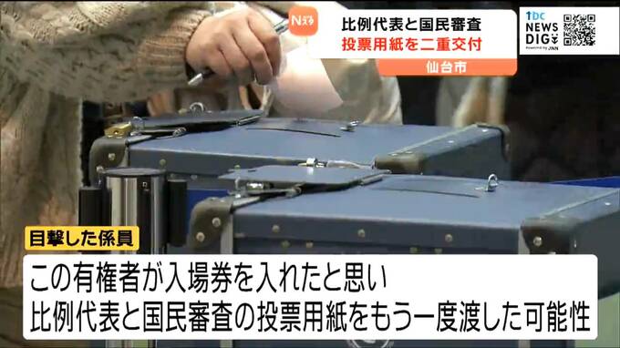 その際、目撃した係員は、この有権者が入場券を入れたと思い改めて宣誓書を書いてもらい、比例代表と国民審査の投票用紙をもう一度渡した可能性があるということです。投票は有効票として扱われます。