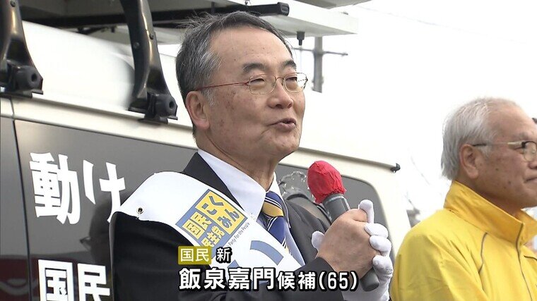 (国民・新人 飯泉嘉門候補)「地方というところは、今まさに疲弊の一途をたどっています。この第2区が地方の象徴といっても過言ではない」