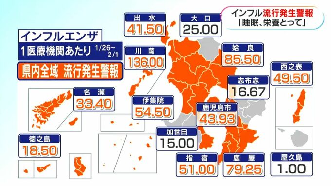 鹿児島県内のインフルエンザの患者数は4週連続で増加し、「流行発生警報」が発表されています。