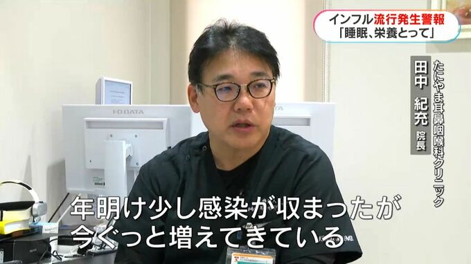 (たにやま耳鼻咽喉科クリニック 田中紀充医師)「年明け少し感染が収まったが今ぐっと増えてきている。(空気が)乾くなどの気候もあり流行しやすい」