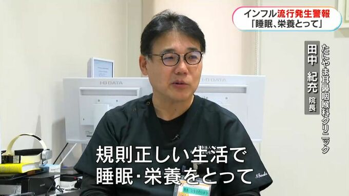 (たにやま耳鼻咽喉科クリニック 田中紀充医師)「手洗い・うがい・マスク、ウイルスにさらされても抵抗できるように体力をつける、規則正しい生活で睡眠・栄養をとって」