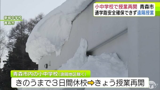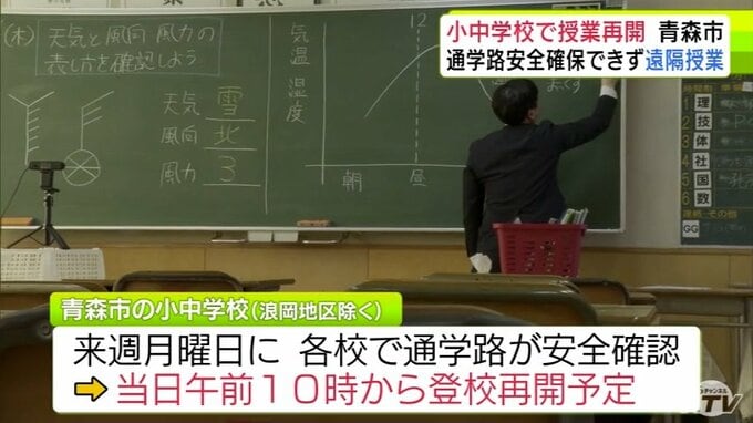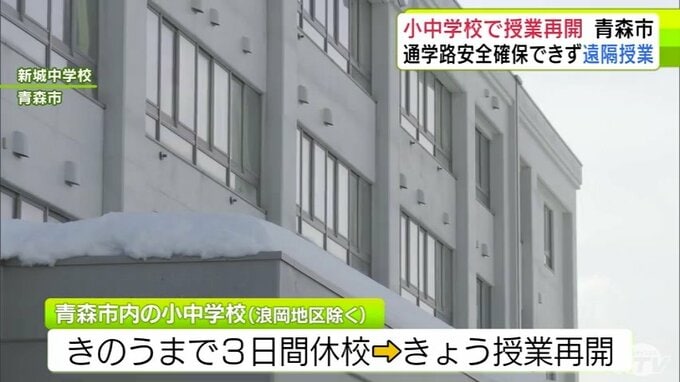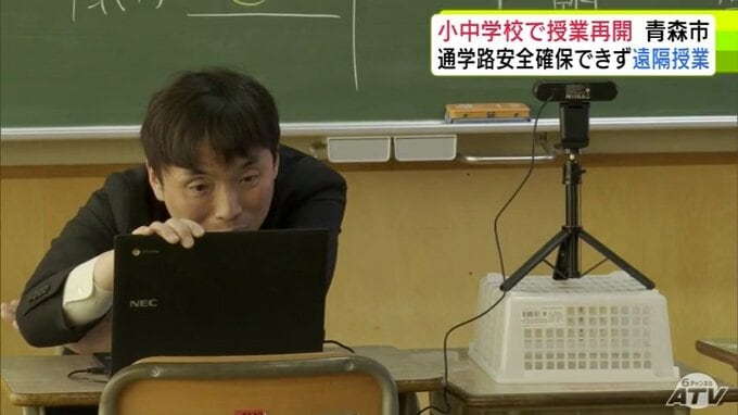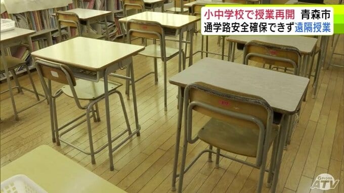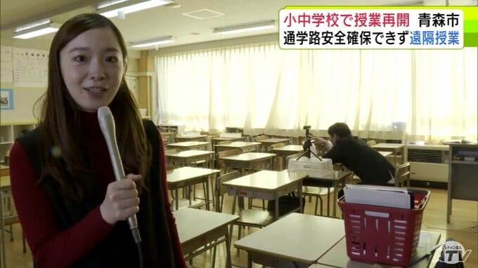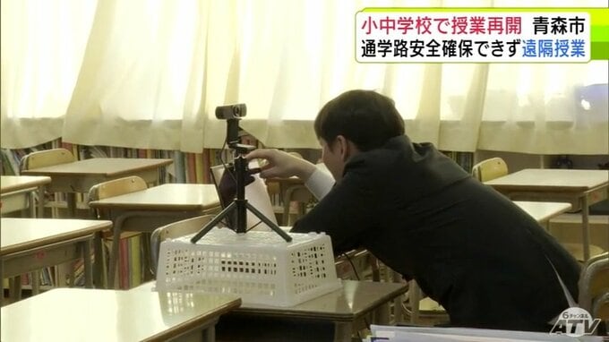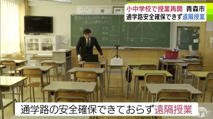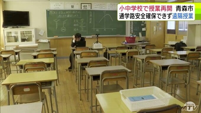 大雪で休校続いていた青森市内の小中学校で授業再開も… 教室には子どもたちの姿なし 通学路の安全確保ができずインターネットを使った遠隔授業
