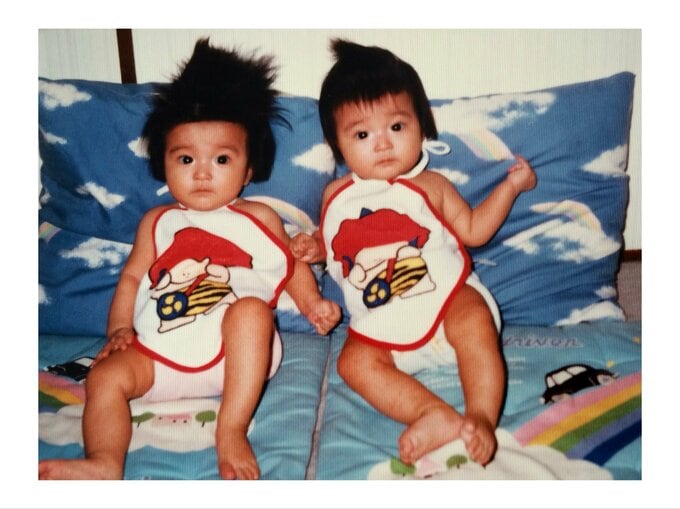 茉奈さんは「今日2月5日はふたごの日らしいです」と、ここぞとばかりに投稿。「赤ちゃんの私たちと、39歳の私たちを貼っておきます」と、妹の佳奈さんと並んでいる写真を2枚、添えています。