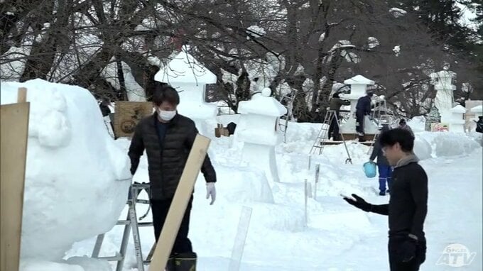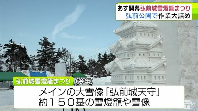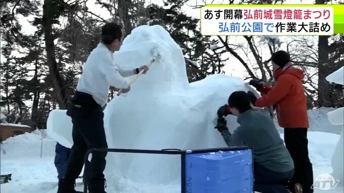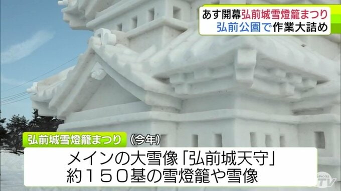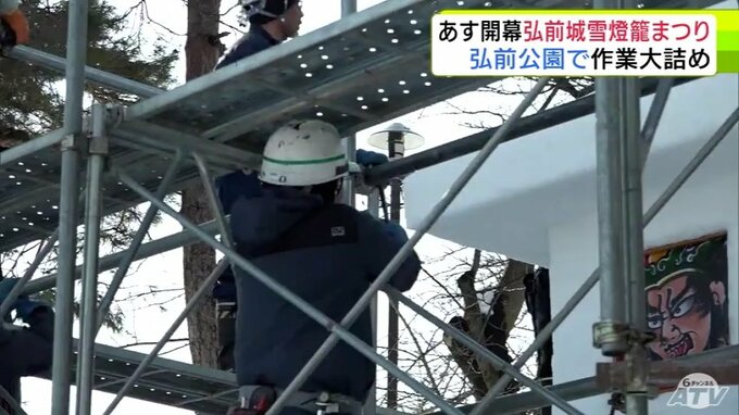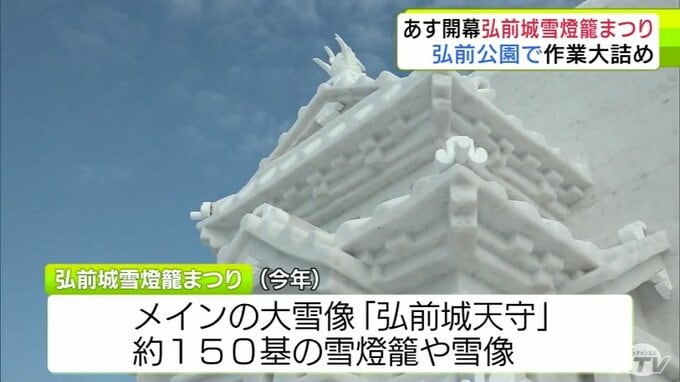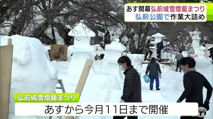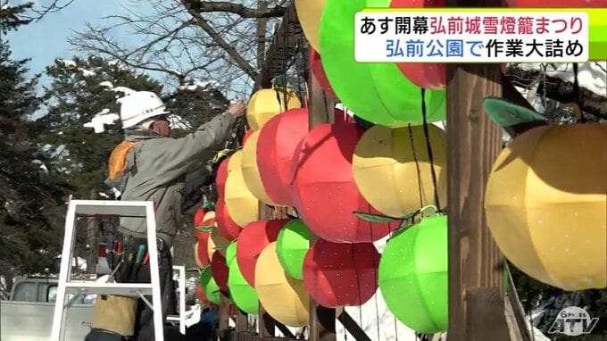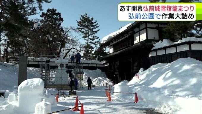 「弘前城雪燈籠まつり」明日6日に開幕 会場の弘前公園では作業が大詰め 青森県弘前市