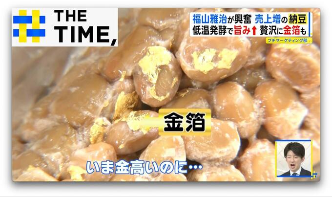 パッケージが金塊の形をした納豆「菊水ゴールド」(菊水食品/80g・1080円)も、店長オススメの1つです。なぜ金塊なのか?包みを開いて納豆を見てみると…