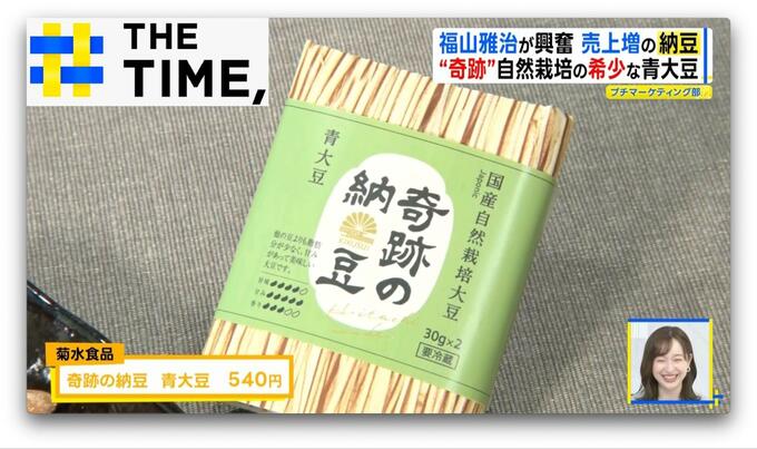 店長オススメ3つ目は、その名も「奇跡の納豆 青大豆」(菊水食品/30g×2・540円)