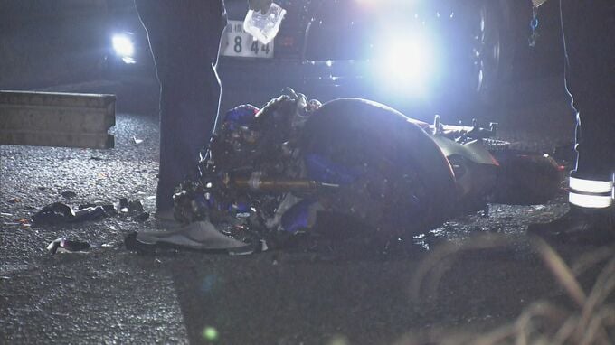 警察によりますと、5日午後9時半ごろ、大型トラックが駐車場から国道へ入ろうとした際、走ってきた大型バイクと衝突しました。