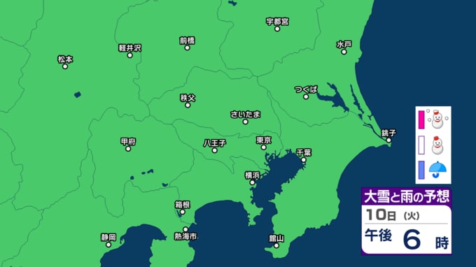 【雪の予想】東京・栃木・群馬・埼玉・茨城・千葉・神奈川・長野・山梨 6日(金)~11日(祝)の雪雨シミュレーション【気象庁/2月6日午後4時25分 関東甲信】 RSK山陽放送 2026年2月6日(金) 10:40 国内 10日(火) 11日(水)までの雪雨シミュレーション