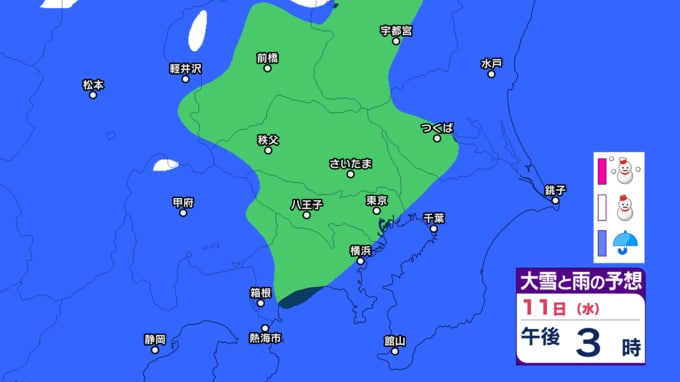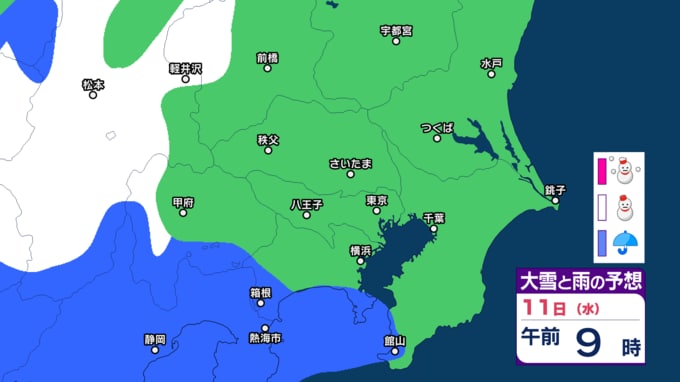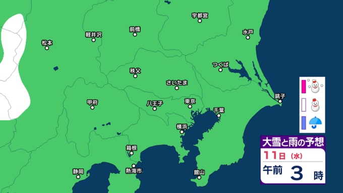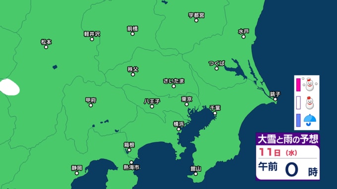 【雪の予想】東京・栃木・群馬・埼玉・茨城・千葉・神奈川・長野・山梨 6日(金)~11日(祝)の雪雨シミュレーション【気象庁/2月6日午後4時25分 関東甲信】 RSK山陽放送 2026年2月6日(金) 10:40 国内 11日(祝) 11日(水)までの雪雨シミュレーション 11日は広範囲で雨か 11日(水)までの雪雨シミュレーション 6日(金)~11日(祝)の雪雨シミュレーション