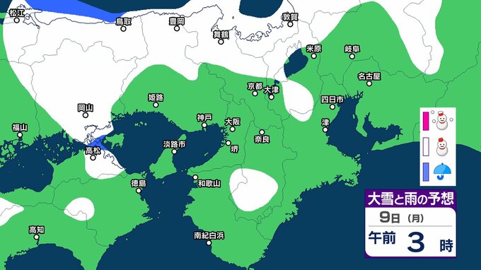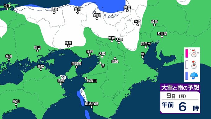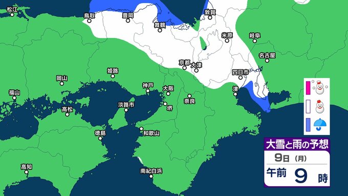 【関西の雪 どうなる?】近畿地方(大阪・京都・兵庫・滋賀・奈良・和歌山)の雪雨シミュレーションと16日間天気予報【気象庁/2月6日現在】 RSK山陽放送 2026年2月6日(金) 11:28 国内 天気 9日(月) 11日(祝)までの雪雨シミュレーション