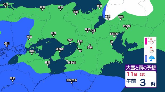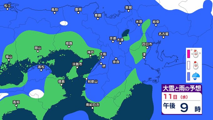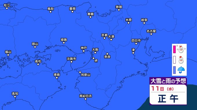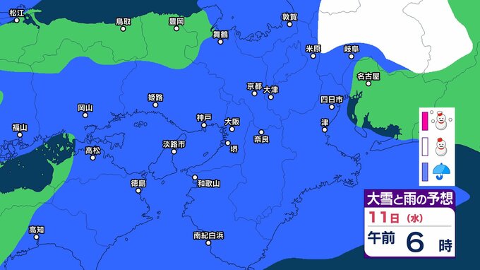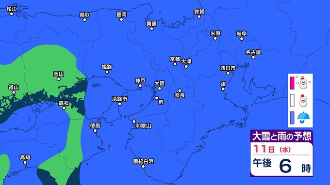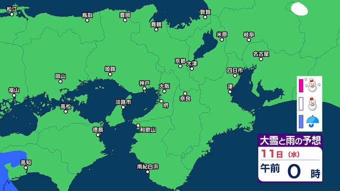 【関西の雪 どうなる?】近畿地方(大阪・京都・兵庫・滋賀・奈良・和歌山)の雪雨シミュレーションと16日間天気予報【気象庁/2月6日現在】 RSK山陽放送 2026年2月6日(金) 11:28 国内 天気 11日(祝) 11日(祝)までの雪雨シミュレーション 11日(祝)までの雪雨シミュレーション