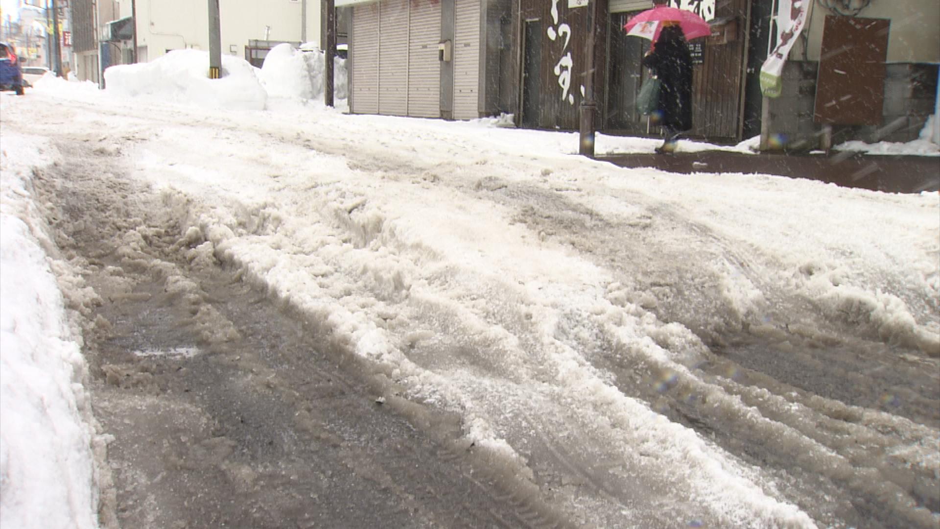 道路に積もった雪が5日までの暖気で解けて路面状況が悪化、市内の道幅が狭い生活道路などでは雪の段差やでこぼこでスタックする車が相次いでいます。