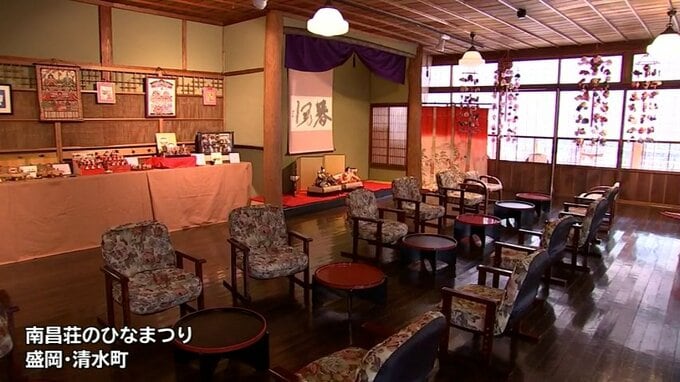 盛岡市景観重要建造物のひとつでもある南昌荘で6日、恒例のひなまつりが始まりました。40組を超えるひな人形が一足早い春を届けています。