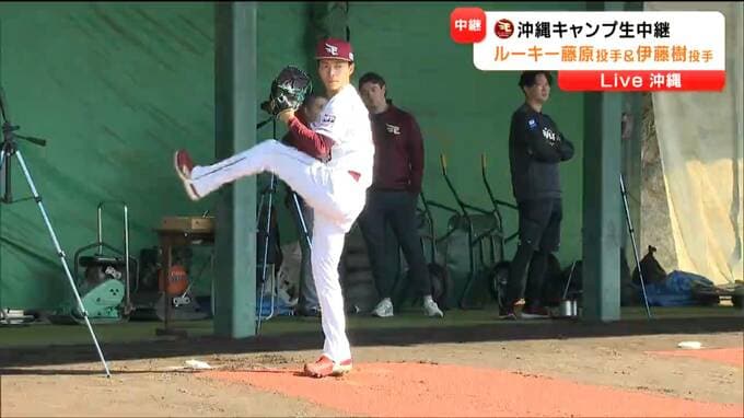 ドラフト1位、藤原投手はキャンプ2度目のブルペン入り。変化球を交え42球、力強いボールを投げ込みました。