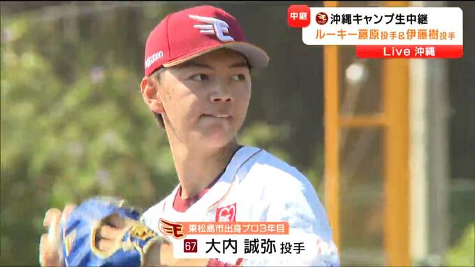 実戦形式の打撃練習には、高卒3年目の大内投手が登板。