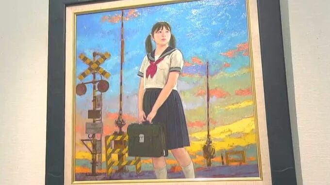 「夏の記憶」をテーマに描いた踏切のある作品は、見る人に懐かしい気持ちになってほしいと言います。