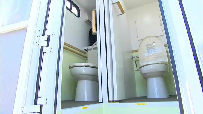 今回、県内で初めて導入されたのは車両とトイレが一体化した自走式のトイレカーです。