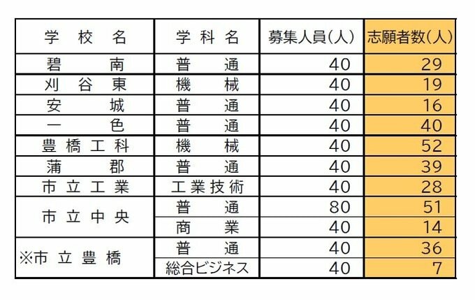 愛知県公立高校入試2026 定時制課程 通信制課程の志願状況・倍率 御津あおば1.50倍 豊野1.40倍 豊橋工科1.30倍など 令和8年度【全校掲載】