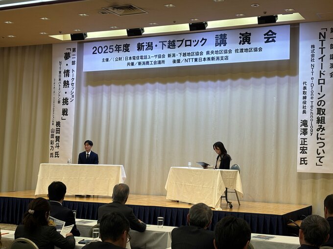 新潟市内のホテルで2月4日に開かれた講演会。日本電信電話ユーザ協会や新潟商工会議所の会員らおよそ120人が集まりました。