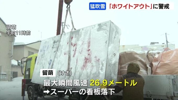 強風でスーパーの看板落下も…「ホワイトアウト」警戒