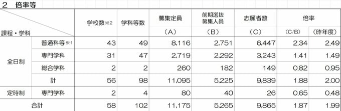 ▼定時制 前年度の倍率を上回る