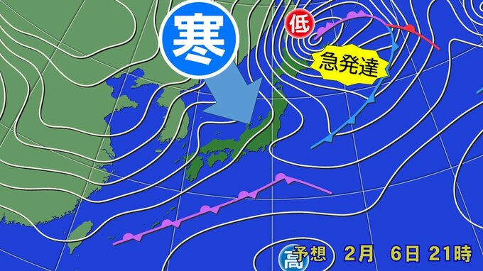 冬型の気圧配置になり、上空に入っている暖気は、週末には一気に寒気へと変わります。上空1500m付近で-6℃以下は平地で雪の目安で、それよりもさらに強い‐12℃以下という、平地でもたちまち積雪となるような寒気も覆う見込みです。