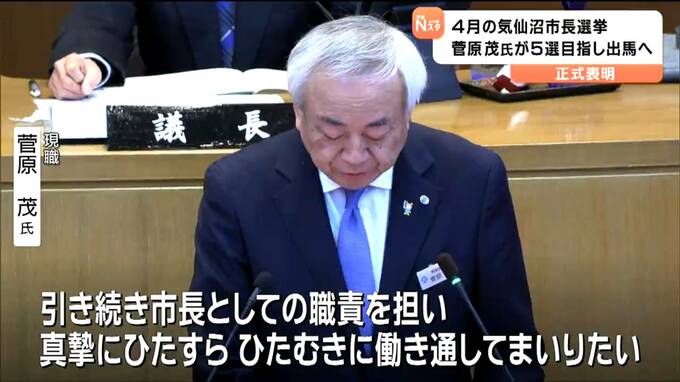 任期満了に伴い4月に行われる気仙沼市長選挙で、現職の菅原茂氏が、5選を目指し立候補することを正式に表明しました。