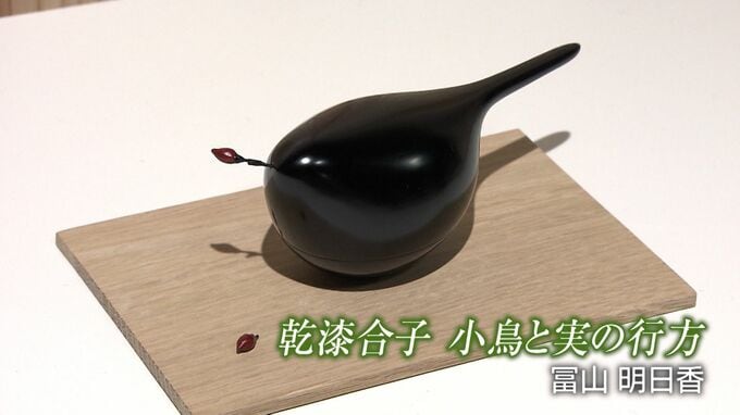 大賞を受賞した「小鳥と実の行方」です。ふっくらとした造形で小鳥の姿を表現していて偶然折れて落ちた実が、タイトル通り、その「行方」の想像力を広げるとして評価されました。