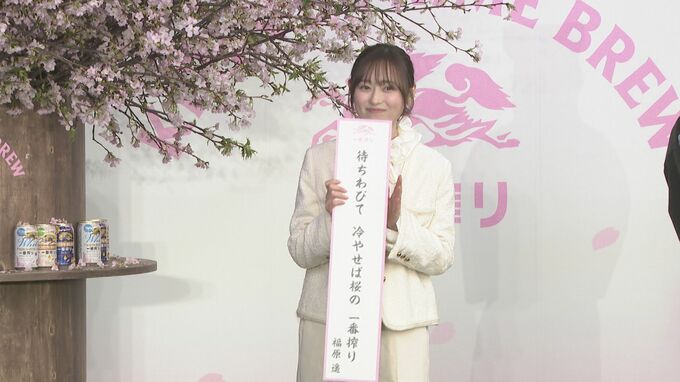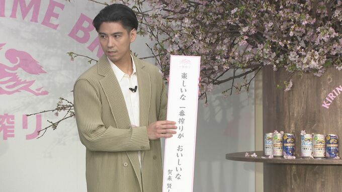 この日は、商品をお題に春を感じる俳句披露にも挑戦。〝普段から俳句を書いているので!〟と自信を見せる2人、最初に福原さんが「待ちわびて、冷やせば桜の 一番搾り」と読み上げると賀来さんは、〝普通にいい句でびっくりしました。俳句を書き慣れている人の書き方です。季語も入れていて。あと声がいいですね、読む声って大事。そこもポイントだと思う。すごく素敵でした〟と大絶賛しました。