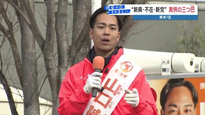 山口候補は演説で、自身が会社員で3児の父親だとアピールし、高市政権との違いを「政治経験がないからこそ、国民目線で政策を訴えられる」と強調します。