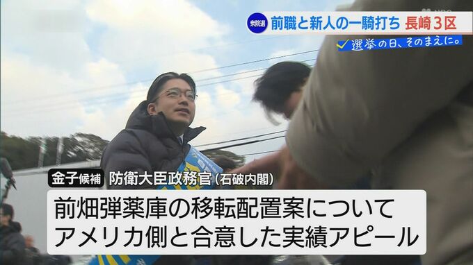 石破内閣で防衛大臣政務官を務めた金子候補は、前畑弾薬庫の移転配置案についてアメリカ側と合意した実績をアピールするほか、「造船」と「防衛産業」の振興を訴えています。