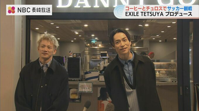 オープンに合わせ、コーヒーショップをプロデュースするEXILEのTETSUYAさんと長崎出身の浦川翔平さんが駆け付けました。