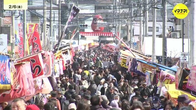 広島県三原市で備後地域に春の訪れを告げる、だるま市「三原神明市」が3日間の日程で始まり、多くの人出で賑わっています。
