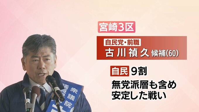 自民党の古川氏は、自民支持層の9割を固め、無党派層も含め安定した戦いです。