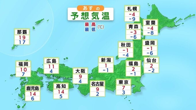 冬型の気圧配置は、9日頃には西日本から次第に緩みますが、北日本から東日本では寒気の影響で降雪が続き、積雪がさらに増える所があるでしょう。
