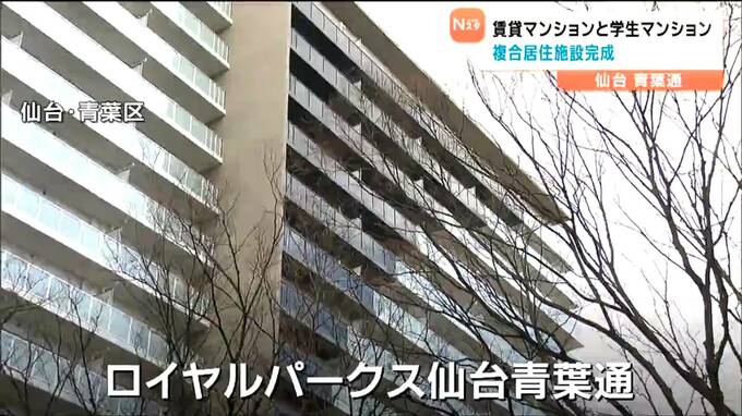 東北エリア最大戸数を誇ります。仙台市の青葉通にあったホテル跡地に高級賃貸マンションと学生用マンションの複合居住施設が完成し内覧会が開かれました。