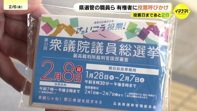 2月8日は衆議院選挙の投票日です。広島市内でも、県選管の職員たちが有権者に投票を呼びかけました。