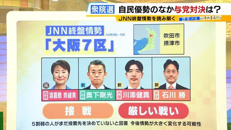 前回は日本維新の会が19選挙区で全勝した大阪でも異変が。「与党同士」となった自民党と維新の会が激戦を繰り広げている選挙区があるのです。