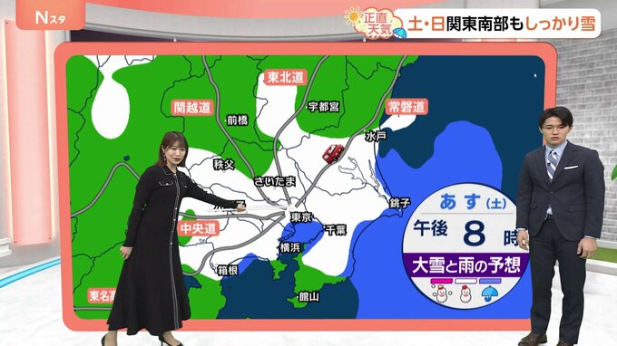 2月7日の関東の天気を高柳光希キャスター、坂口愛美気象予報士がお伝えします。・土・日 関東南部もしっかり雪・気温急降下 最大級の防寒を
