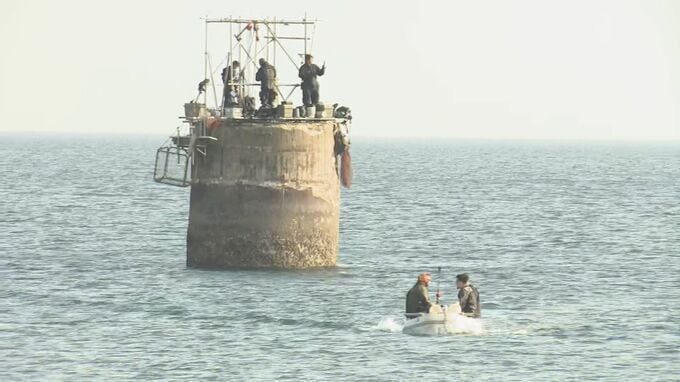 太平洋戦争中に水没し犠牲者の遺骨が取り残された山口県宇部市の長生炭鉱で、遺骨収容に向けた潜水調査です。