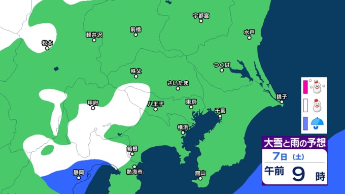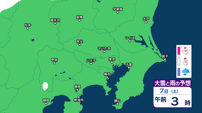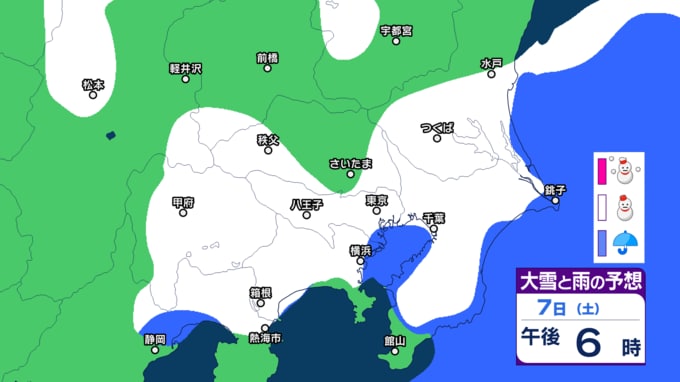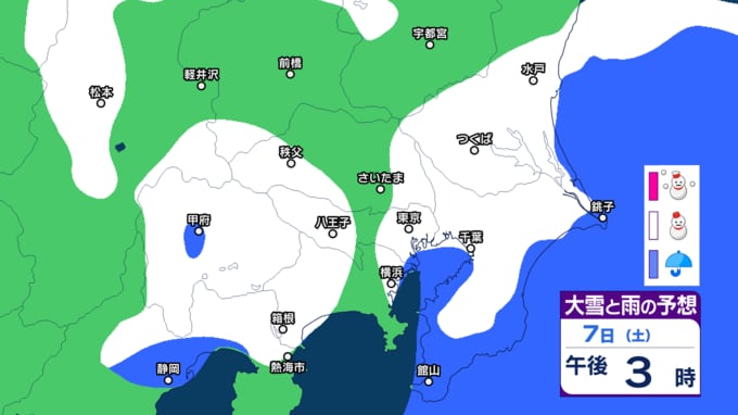 気象庁によりますと、関東甲信地方では、7日から8日にかけて、山沿いや山地を中心に、平地でも大雪となる所があるでしょう。