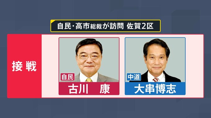 また、佐賀2区には高市総裁が応援に入った。この選挙区では中道の大串博志氏と自民党の古川康氏が一騎打ち。立憲で代表代行、選対委員長などの要職を務めた大串氏が、ここ数回は選挙区でも勝ち続けてきたが、今回は接戦となっている。