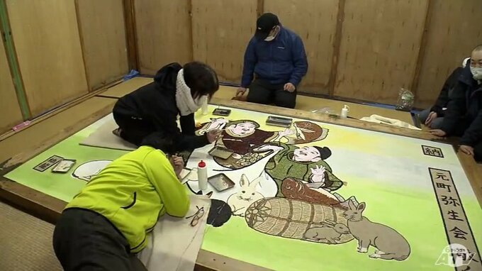 豊作を願うニュースです。鶴田町で新しい1年の五穀豊穣を願い穀物の種を貼り付けて絵を描く「弥生画(やよいが)」作りが進んでいます。「弥生画」は元町弥生会(もとまち・やよいかい)の会員たち13人が、11月下…