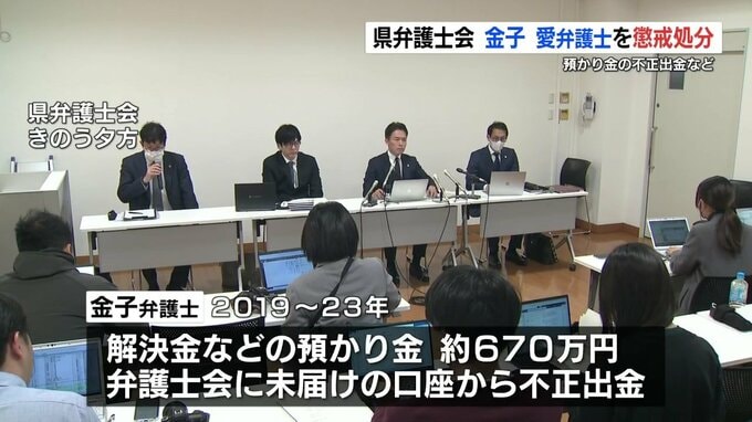 熊本県弁護士会は、依頼者からの預かり金の一部を不正に引き出したなどとして、男性弁護士を業務停止処分としました。業務停止5か月の懲戒処分を受けたのは、県弁護士会に所属する金子愛(かねこ・あい)弁護士(51…