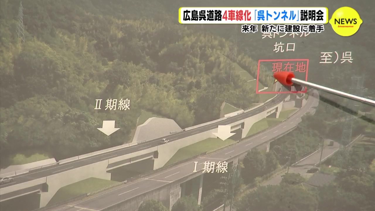 4車線化の事業を進めている広島呉道路で、新たに着工するトンネルの整備状況について、説明会が開かれました。