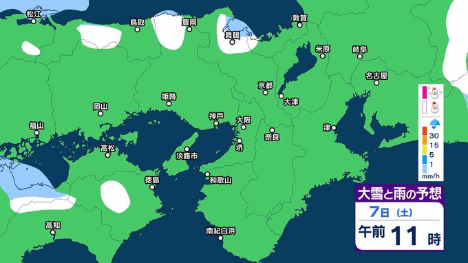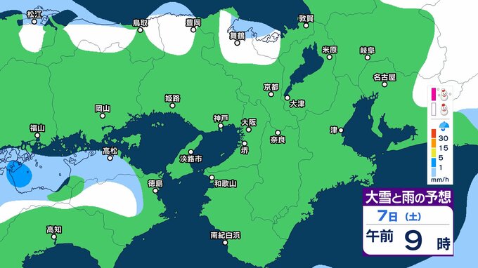 近畿地方では、8日は上空約5000メートルに氷点下36度以下の強い寒気が流れ込み、強い冬型の気圧配置となる見込みです。
