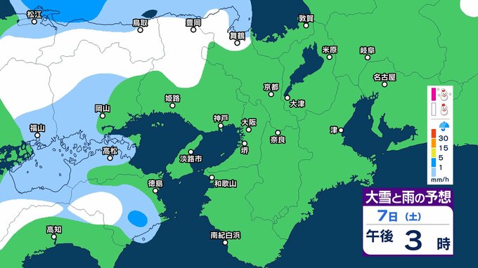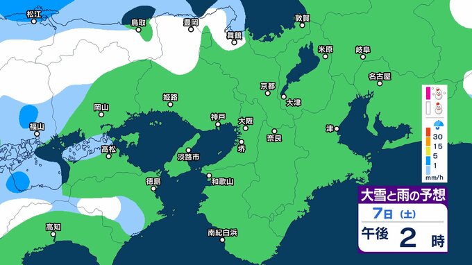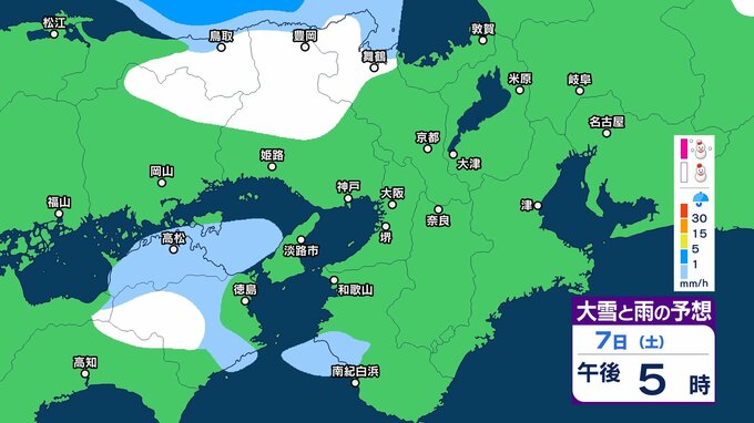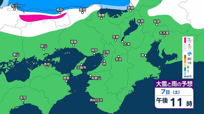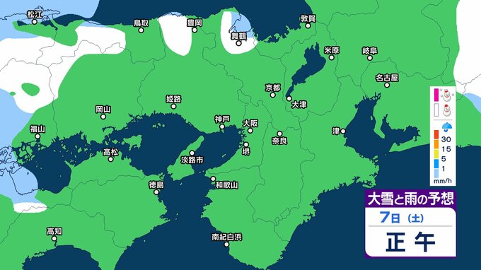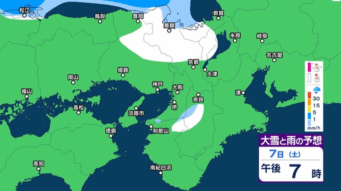 7日12時から8日12時までに予想される24時間降雪量は多い所で、