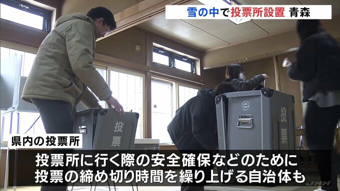 記録的な大雪で生活に混乱が生じている青森県では、雪が舞う中投票所の設置が行われています。積雪が130センチに迫る青森市でも投票所の設置が進められていて、職員が記載台の組立てなどを行いました。また、投票…