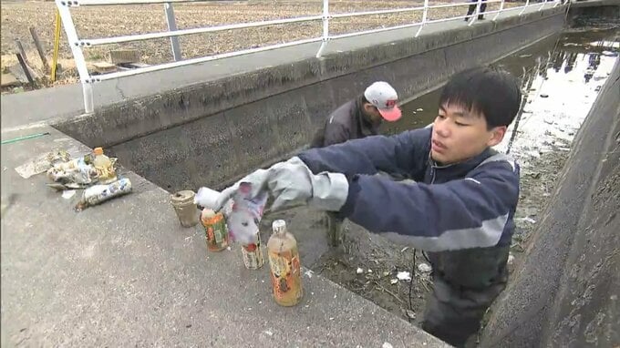 学校近くの用水路で浮いているごみや漂着しているごみを次々回収していきました。