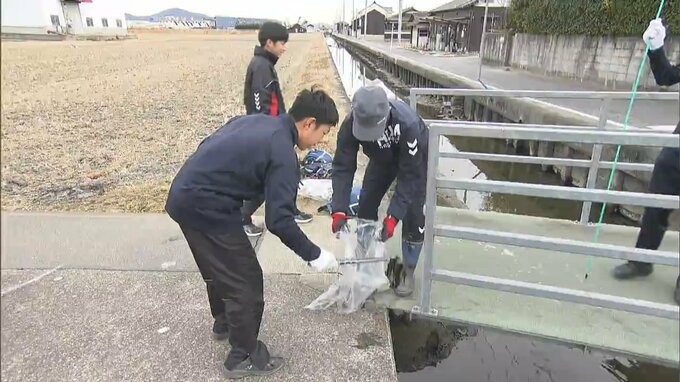 漂流するごみの実態を知り海ごみ問題への関心を高めようと、中学生たちが用水路の清掃活動を行いました。